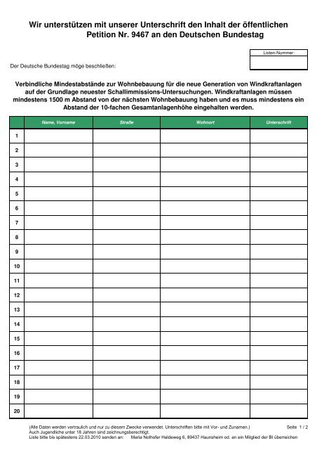 Unterschriftenliste Fuer Petition An Deutschen Bundestag V1 4